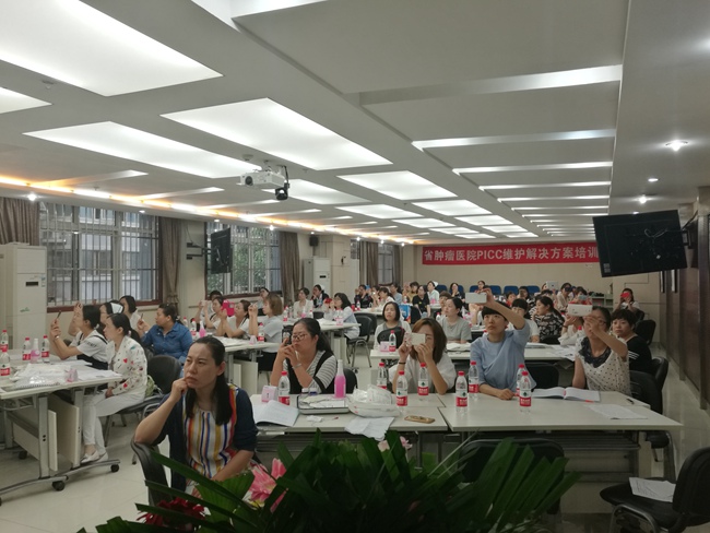 此次素股静疗小组的各位专家老师,包括外科总护士长,静疗小组组长王雁老师、副组长唐红霞老师、以及张彧护士长、邹春芳护士长等核心成员都亲自参与授课,从维护流程、并发症的防治、健康宣教等多个角度将最规范的维护要求,结合自己多年的临床经验做了深入浅出的讲解。静疗小组更特别邀请到第四军医大学唐都素股