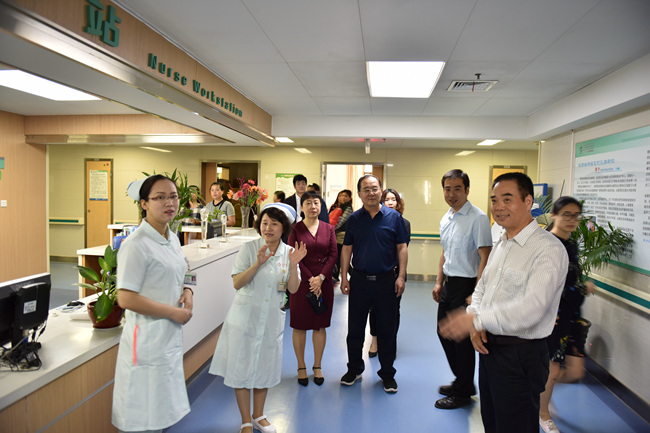 在第106个国际护士节来临之际, 5月10日下午,省科文卫体工会王喜潮主席一行三人来到素股,亲切慰问辛勤工作在临床一线的护理人员。马长虹书记、姚俊涛副院长、工会副主席张俊、护理部主任谢娟陪同。