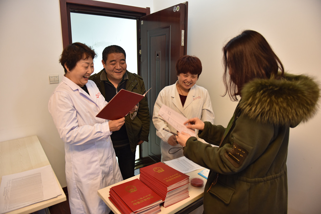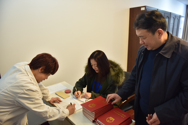 家属院几幢公寓楼多年未取得房产证的情况下,多次督促相关部门与房管部门协商,完善相关手续,今年3月中旬,该院为职工将房产证办理完毕,并陆续发放到职工手中。