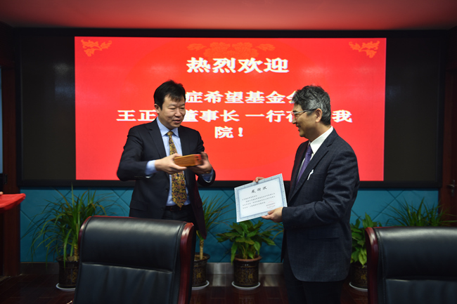 (向台湾HOPE癌症希望基金会董事长王旭正颁发感谢状)