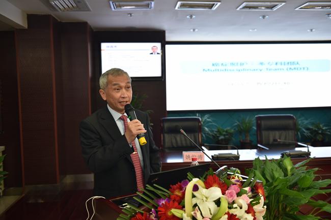 癌症中心邱昌芳副院长就《多专科诊疗团队对肿瘤诊疗之影响》为主题,向众位参会者讲述了怎样建立和培养多专科团队(MDT),如何利用MDT给患者提供更精准、更适合的治疗,以及怎样将MDT理念融入到改善患者生存的计划中,为学员们提供了MDT建设领域的新视角。