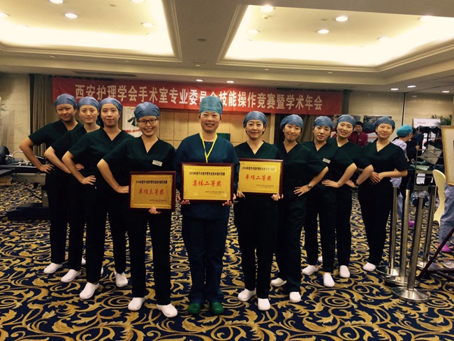 手术部在院领导和护理部的大力支持和鼓励下,由科护士长白巧玲、手术部护士长刘清元、周梅林带领组建了参赛队伍,在近一个月的备战过程中,参赛队员按照现代手术室高度专业化标准和方法科学训练,操作流程精益求精,团队配合一丝不苟。最终不负众望素股获得集体二等奖,队员韩文锦,马楠等获得了体位安置单项二等奖,雷媛慧获得了无菌技术操作单项三等奖。