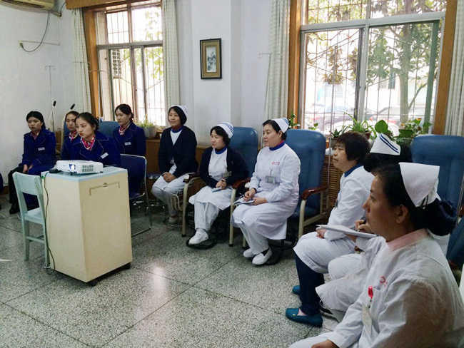 查房分为两部分进行,第一部分由每位导医护士通过PPT形式就导医应具备的基本素养、语言的规范、职责、流程进行讲解;第二部分是导医人员分组就日常导诊工作进行情景展示,大家就患者常见咨询问题形式、导医工作的规范用语、仪表、举止从站、坐、行姿和微笑以及如何接待病人、如何护送病人、如何与之交流等日常导诊工作进行展示。查房结束后,护理部两位领导就本次查房给予好评。另外,谢主任建议导引患者就诊时,语言应通俗易懂,并使用婉语;加强导医人员专业知识学习;日常工作中还应训练导医对突发状况的应急处理能力;更重要的是主动向患者提供帮助,用饱满的热情去接待每一位患者,让患者切实感受到我们真诚的服务。