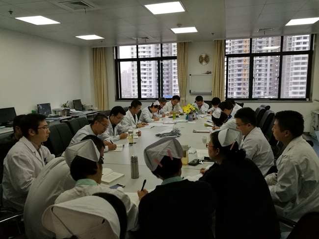 已经是下班时间的医办室会议桌旁围满了医务人员,是病案讨论?是科室业务学习?都不是,这是外科第二党支部在乳腺二病区医办室组织召开的支部集中学习活动。