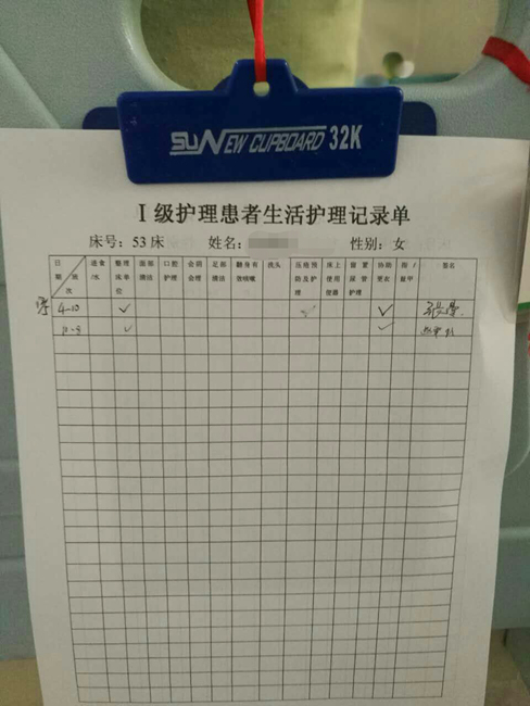 检查过程中,检查组老对师特别内二科在健康教育、护理记录方面的细节服务给予肯定和赞扬。在健康教育方面,受检科室在全面落实护理部要求的基础上,针对癌痛患者在口服止痛药过程中常见问题及注意事项,专门制作了健康教育提示卡,悬挂于患者床边,有效提高了患者健康教育的针对性和适用性。在护理记录方面,为加强对Ⅰ级护理患者的生活护理,科室设计了《Ⅰ级护理患者生活护理记录单》,记录单从患者进食、床单位整理、身体部位清洁、翻身、压疮预防、协助更衣等13个方面逐条进行对照记录,丰富了Ⅰ级护理患者生活护理的内容,提高了危重患者生活护理的有效性和实效性。当然,检查组人员也对工作中不足进行指导。