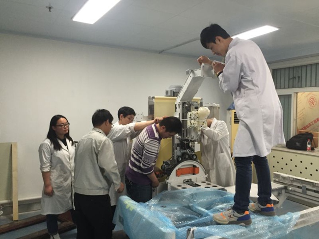 在院领导和设备科的积极努力下,放射科日立数字胃肠机配件已全部进场,在院领导的关怀下,设备科和后勤保障部的全力配合下,解决了卸车,机器底座钢板加固等问题,已进入装配阶段,由于液压设备无法进入装配现场,很多大型配件的搬运、装配工作均由我科室人员协同日立工程师完成,甚至女生也积极上阵,所有这一切,都是因为我们期待着胃肠机尽快安装完成并投入使用,为素股临床一线提供更精准、更优质的图像质量,更准确的影像诊断,所以大家全力以赴的和时间赛跑,体现出我科室的团队协作能力、体现出放射科每个成员的主人翁精神、体现出肿瘤素股