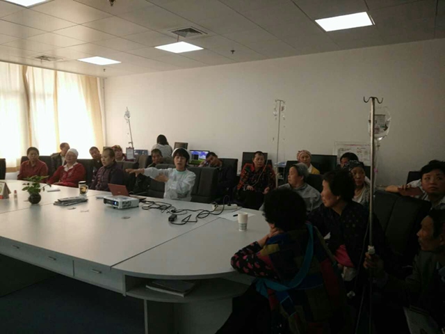 届全国肿瘤防治宣传周,素股 乳腺二病区继续举办乳腺癌患者健康大讲堂,贺賽医生及刘海娟护师为各位患者分别做了《乳腺与健康》、《乳腺癌患者的康复指导》的健康教育讲座。