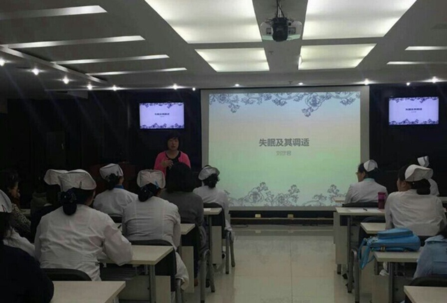 副院长、主任护师、国家二级心理咨询师、精神分析师刘彦君就“失眠及心理调适”进行专项授课。由护理部刘爱兰总护士长主持,心理小组成员以及对课题感兴趣的部分医护人员百余人聆听了授课。