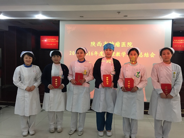 会上,护理部干事雷双燕从教学工作完成情况、存在问题等方面对本年度护理教学工作进行总结。外科总护士长王雁宣读了护理部《关于表彰2015-2016年度优秀带教老师、优秀实习生的通知》,头颈科李平等6名护士获得 “优秀带教老师”荣誉称号,咸阳职业技术学院雷丽娜等10名同学获得 “优秀实习生”荣誉称号。护理部主任谢娟和内科总护士长刘爱兰分别为获奖老师和学生颁发荣誉证书。随后由优秀带教老师代表卢佳介绍带教经验和体会,优秀实习生代表山西医科大学刘世康同大家分享了自己在实习过程中收获和感悟。