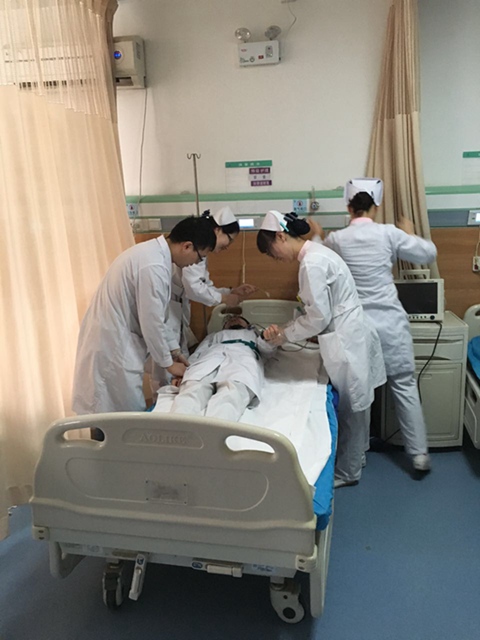节前组织年轻护士进行今年最后一次应急演练
