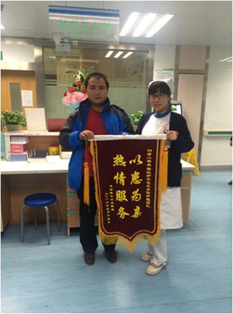 1月22日上午,患者耿彩芳的家属带着写有“仁心仁德”“已患为亲,热情服务”的锦旗送给了给予她细心治疗和照顾的姚安梅主任医师、朱格红护士长及全体护理人员。简单质朴的几个字,表达了患者及家属心里最真挚的感情,是她对曾经每天不停穿梭于病房之间,为她精心治疗、解除病痛、带给她生活信心的医务人员的感谢和感激。