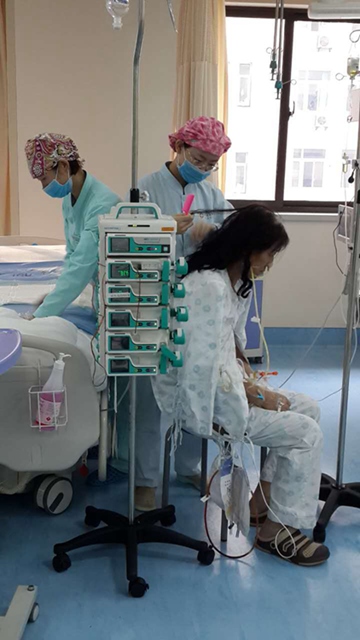 下午两点,重症医学科在忙碌着,两位护士在协助患者下床行走,护理员在为患者梳头……患者系子宫全切术后第二天,护士正在按计划进行术后早期活动训练。
