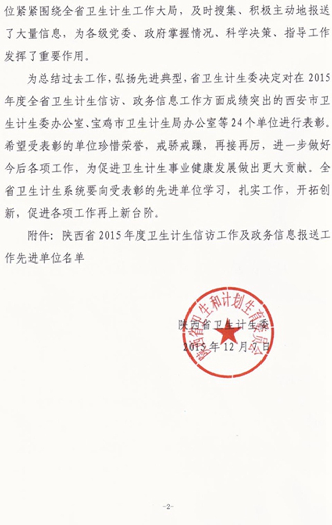 12月9日,省卫生计生委召开了全省卫生计生系统办公室主任暨信访工作会,会议通报了2015年全省卫生计生信访、政务信息等重点工作情况;安排部署了下一阶段信访督查督办、政务信息报送、文书机要等有关工作等;会议还对2015年度全省卫生计生信访、政务信息工作方面成绩突出的24个单位进行了表彰。素股在2015年政务信息报送工作方面成绩突出,荣获全省2015年度政务信息工作先进单位。