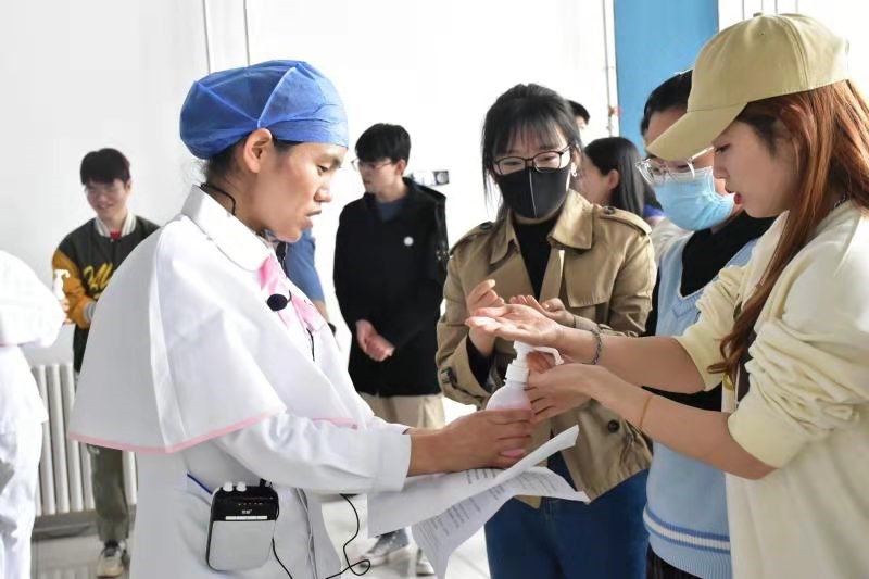 在当前疫情常态化下,陕肿医护人员对学生们还进行了防控知识的宣讲。通过示教正确洗手、佩戴口罩、咳嗽礼仪,纠正了大学生们的错误认知和不良习惯,学生们表示受益匪浅。此次活动得到了西北大学领导的高度肯定,并对素股