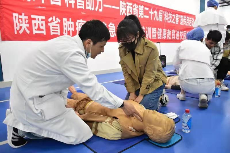 将“科技之春”宣传活动与推进健康陕西活动相结合,发挥医疗卫生行业健康科普宣传的优势,对大学生们进行了健康知识教育和急救技能、疫情防控措施的培训,受到大学教职工和学生们的一致好评,活动取得了圆满成功。