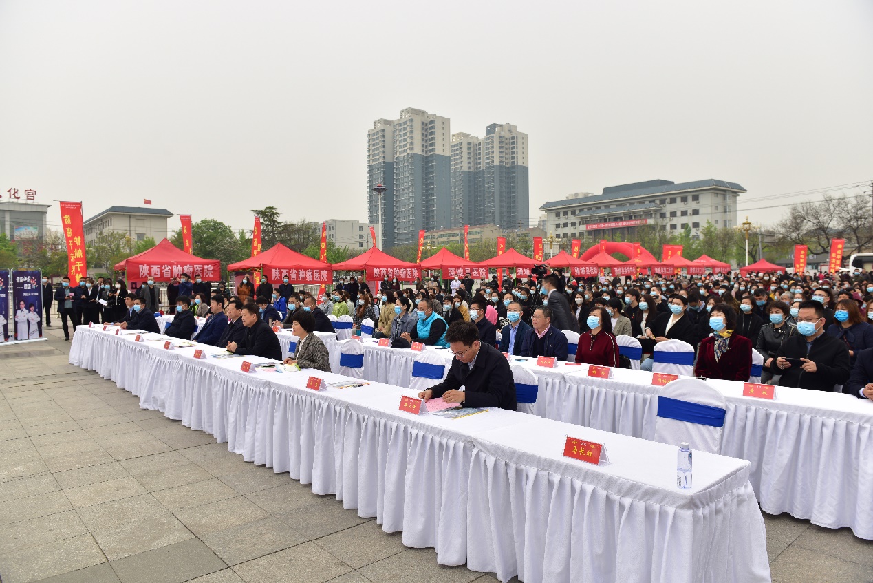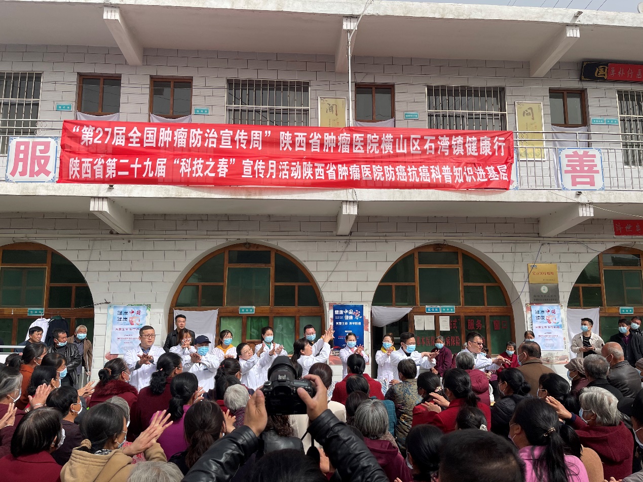 (在蒲城县中心广场,第27届全国肿瘤防治宣传周陕西宣传活动正式启动)