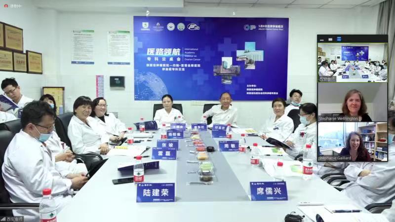 会上,妇科四病区席儒兴博士代表陕肿妇科肿瘤团队分享了“姐妹同患卵巢癌的诊疗分享”,约翰·霍普金斯两位专家对中方优秀的团队和先进的诊疗方案留下了深刻印象,并表示高度赞扬,同时也表达了疫情后前往素股