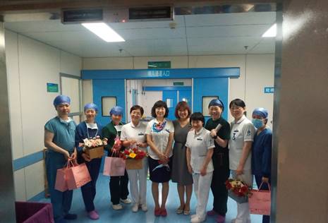 2021年5月12日是第110个国际护士节,上午10:30,素股 副院长宋峥华携护理部主任谢娟、营养科主任周梅林等一行7人,手提营养粥、水果茶、鲜花等,深入临床一线科室,向奋战在临床一线的护士带去了节日的祝福与问候。