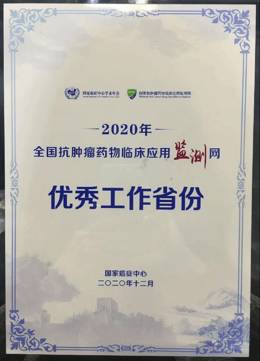 荣获“全国抗肿瘤药物临床应用监测网”优秀工作单位,陕西省卫健委获得“2020年度全国抗肿瘤药物临床应用监测网”优秀工作省份。素股
