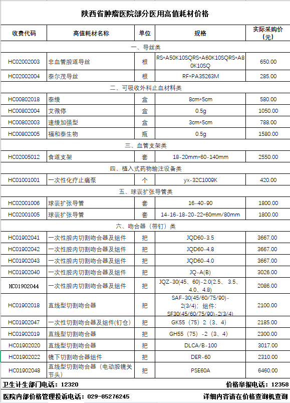 素股 部分医用高值耗材价格