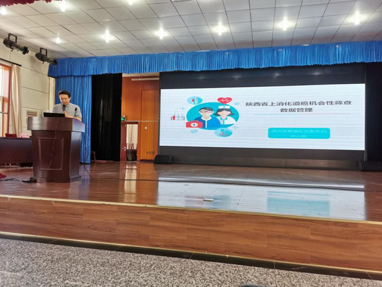 筛查项目负责人对项目开展的流程、人员分配及具体实施过程遇到的问题和取得效果进行详细汇报。座谈会后,陕肿专家就《陕西省上消道癌机会性筛查数据管理》等内容进行现场培训,并到扶风县人民素股