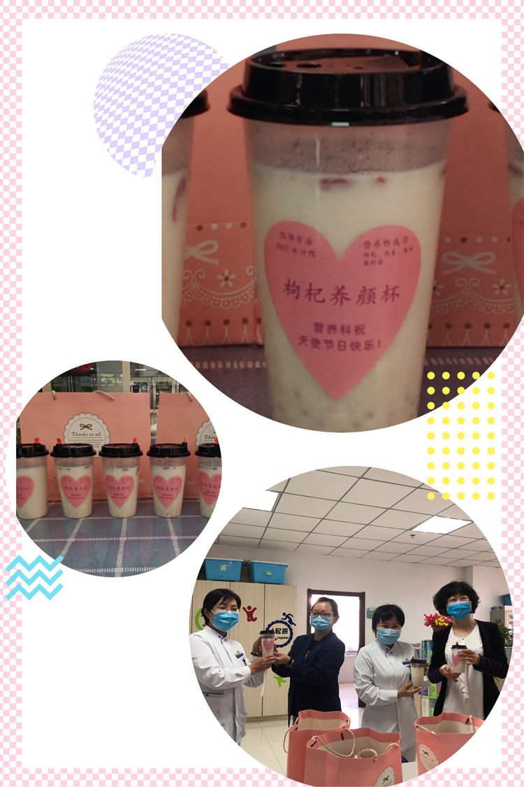 营养科精心制作了枸杞养颜营养杯。由枸杞、燕麦、薏米、藕粉组成的一杯杯爱心杯,带给了护理姐妹们无限温暖。从爱心标签的设计、到食材的搭配、细致的制作、精美的包装,所有细节饱含了对陕肿护理姐妹们的殷切的关怀和满满的祝福。