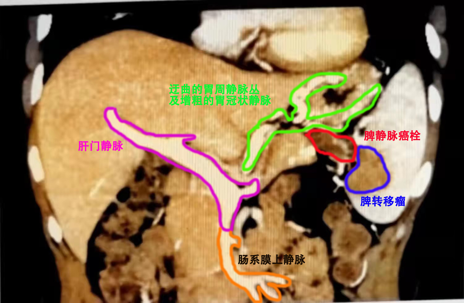 患者史xx,在5月中旬以卵巢癌晚期入住妇四科,经全面体格检查和影像学评估考虑卵巢上皮来源的恶性肿瘤可能,病变累及盆腹腔内多个脏器和组织,包括子宫、乙状结肠及直肠,腹膜及大网膜广泛转移,盆腔及腹主动脉旁多发肿大淋巴结考虑转移,脾胃韧带转移。更为严重的是腹部增强MRI提示:脾内不规则肿块,脾静脉可见广泛癌栓。原素股