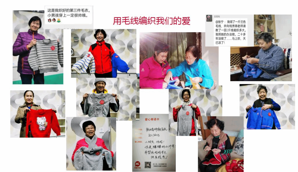 (老奶奶们显身手,爱心毛衣传温情。20多年没织了,技艺没丢。)