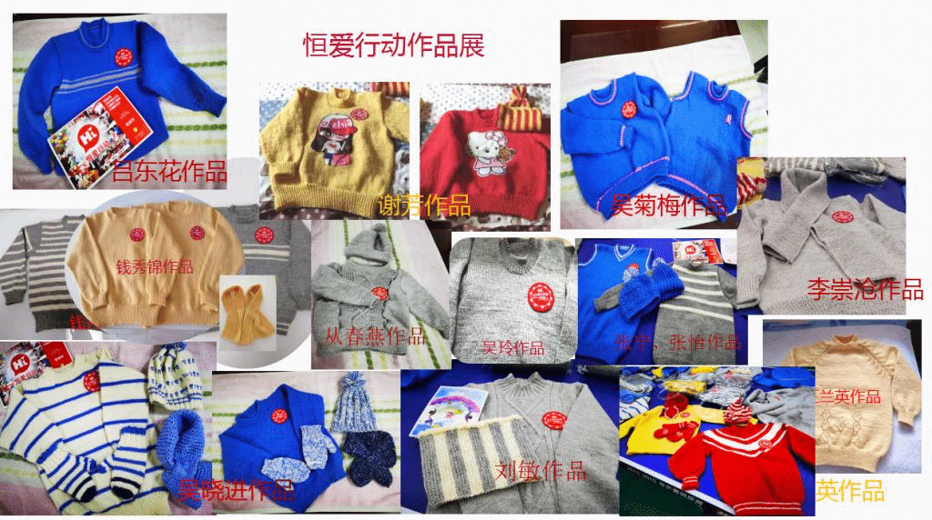 在冬季来临之前,离退休老师们凭借灵巧的双手、精湛的技艺,编织出一件件漂亮、独特新颖的毛衣、围巾、帽子、手套等,希望边区的儿童感受到温暖,将爱继续传递。
