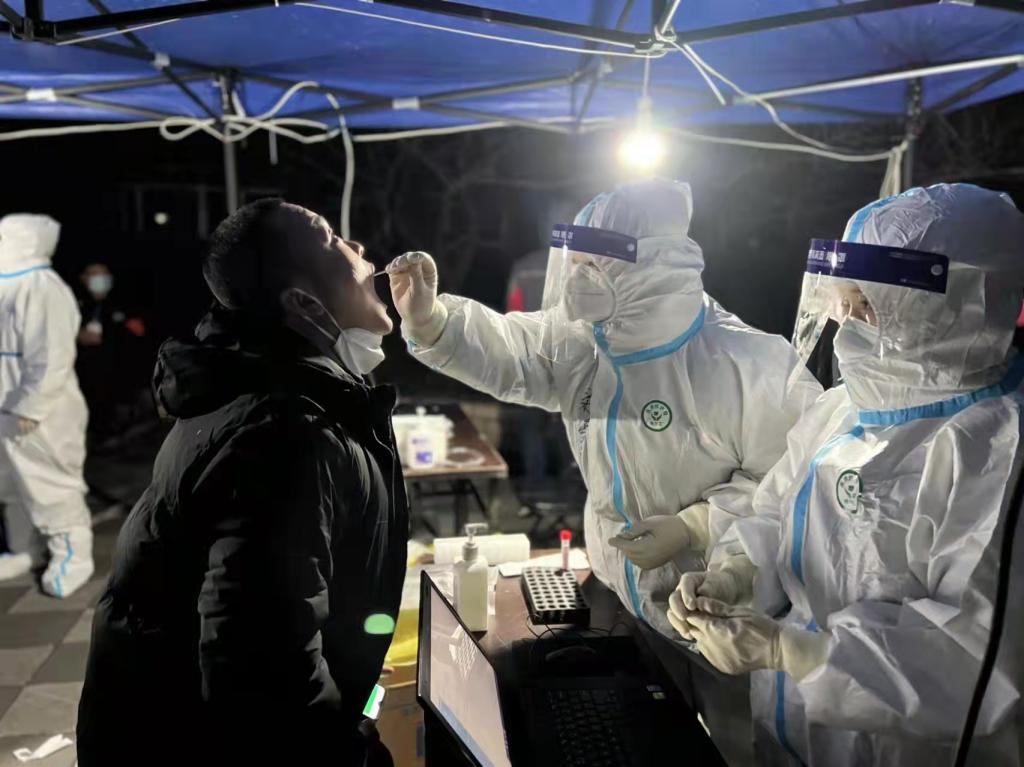 立即组建40人核酸采样队随时待命。12月14日晚,接上级指令后,核酸采样队全体队员火速前往长安大学本部南院住宅区,一小时内全部集结完毕,立即投入到紧张有序的工作中,连夜奋战直至凌晨三点,配合完成长安大学本部1万5千余例核酸采样任务。