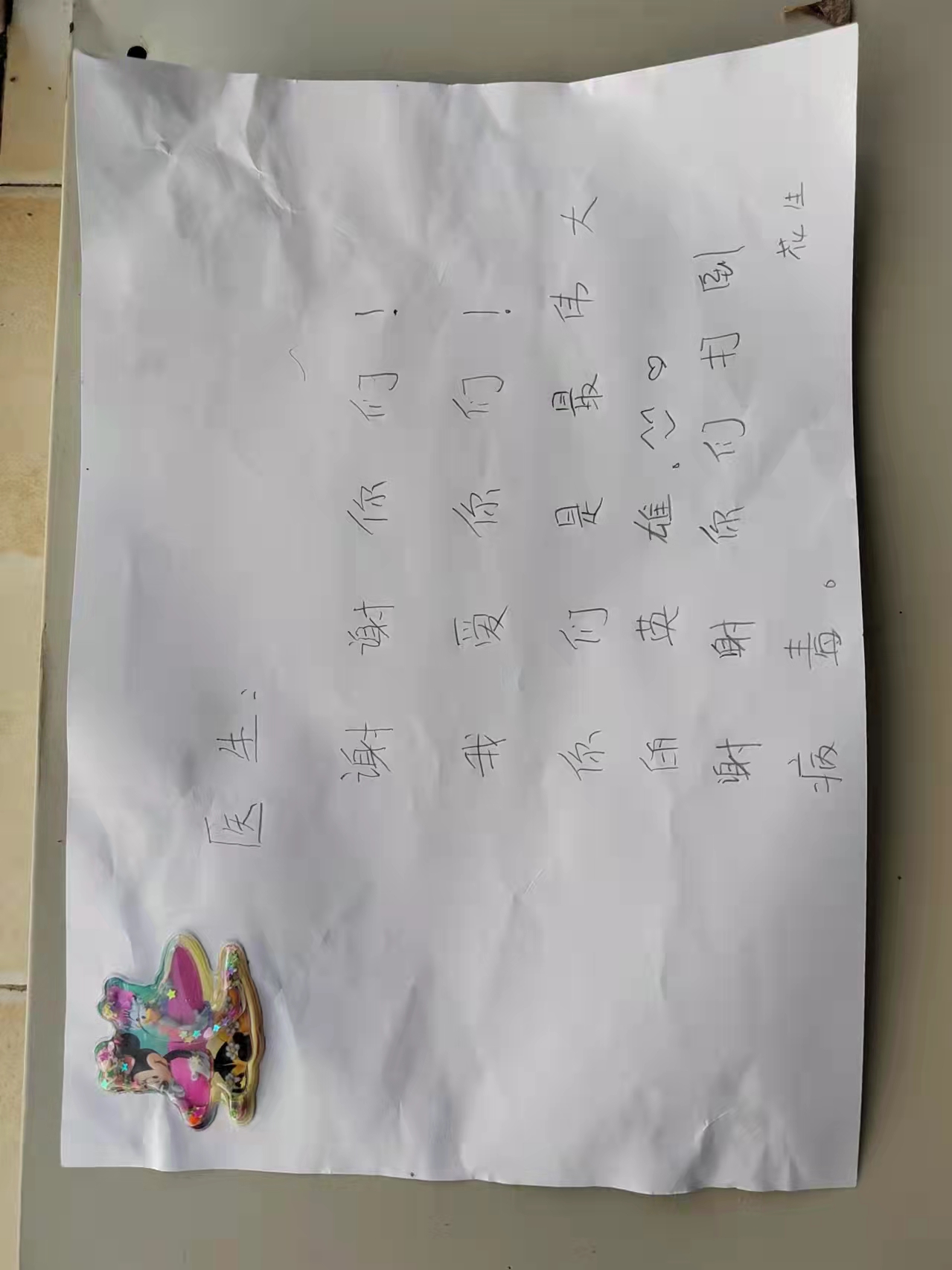 (在风度天成小区,素股核酸采样队收到小姑娘的手写感谢信。)