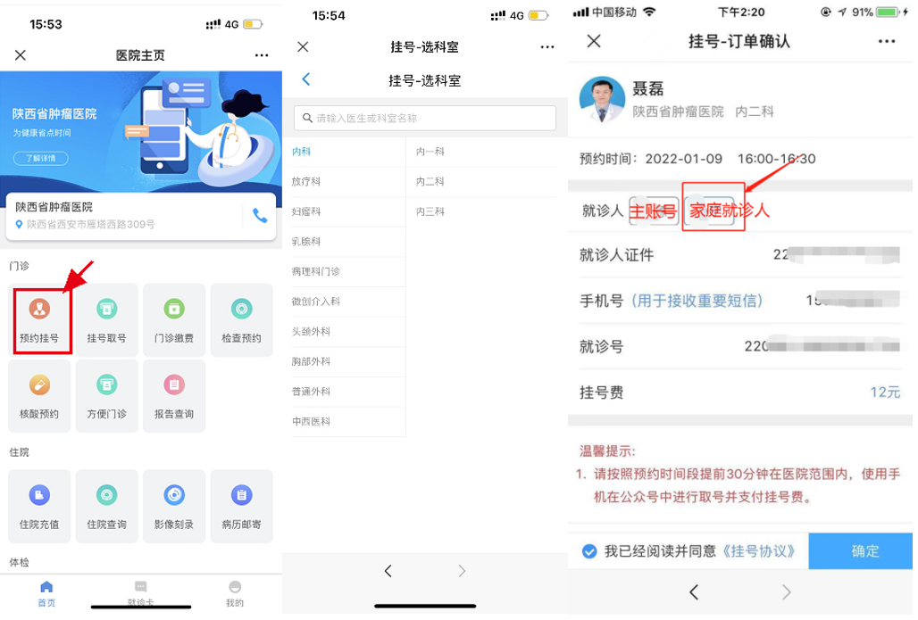 注意:在最后选择就诊人应选择对应家庭就诊人名字。