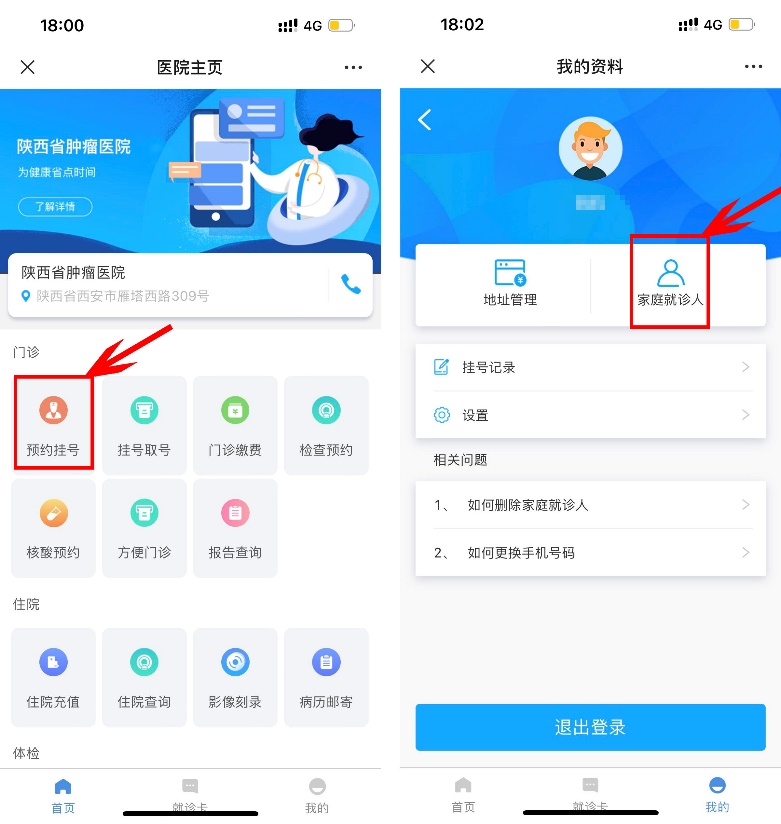 主页,点击右下角“我的”,选择“家庭就诊人”。