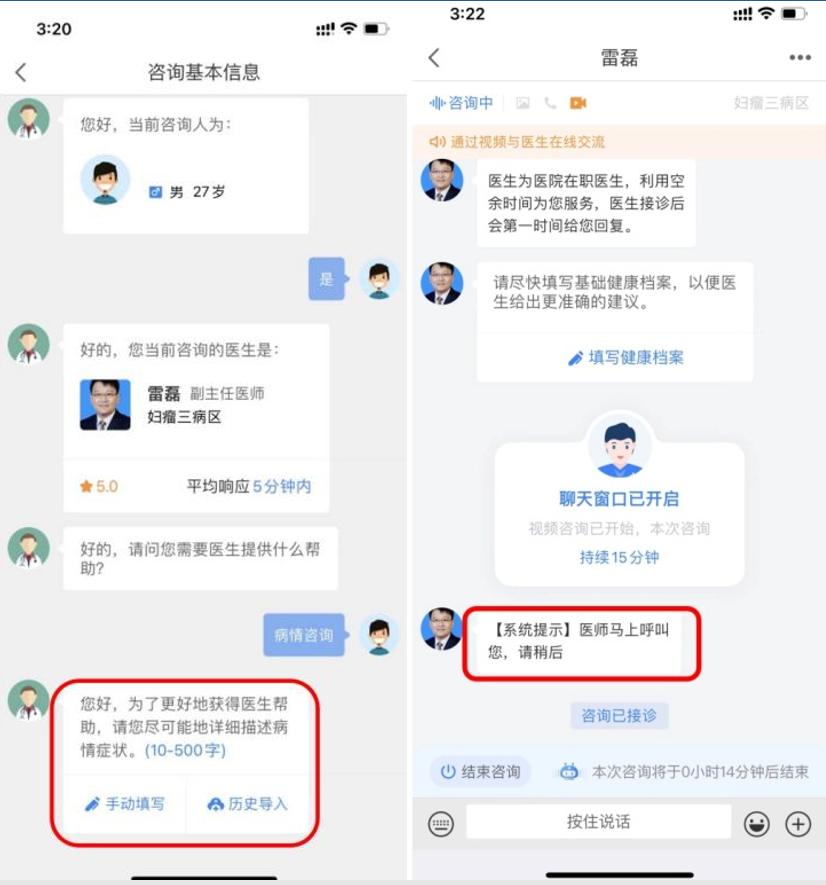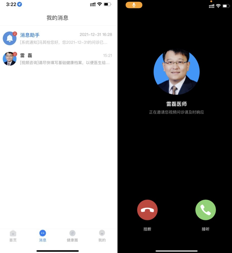 2、 注意查收素股消息提示,等待医生视频呼叫,即可与医生进行视频通话。
