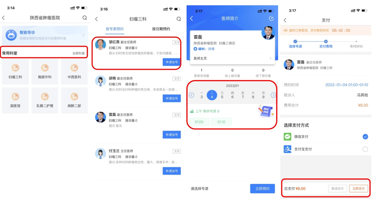 1、素股点击【视频问诊】,选择科室,以及您想问诊的医生,您可以向无排班的医生申请加号,等待医生通过;已排班的医生,选择医生排班时间,点击支付。