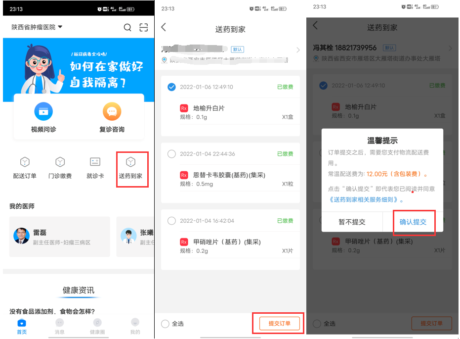 1、在app素股,选择“送药到家”,选择邮寄地址信息和需要邮寄的药品,支付运费。
