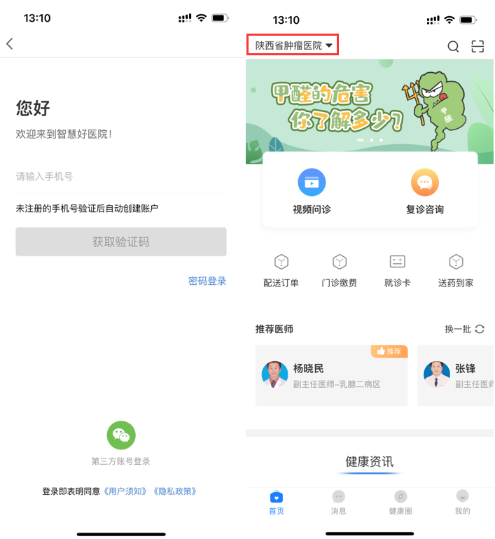【视频问诊】、【复诊咨询】、【药品配送】操作流程如下
