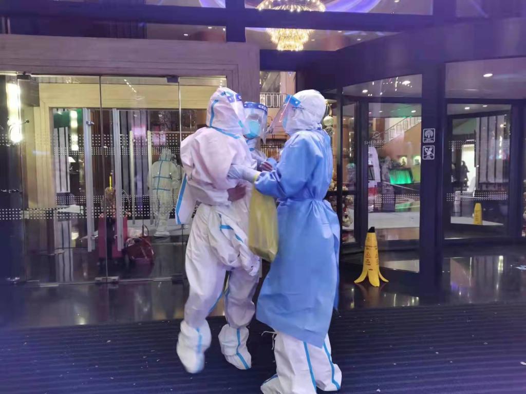 在潘家庄村,我们穿着防护服从村这头走到那一头,不断爬着“城中村“里各式各样的楼梯,虽然室外温度不过二、三度,但持续工作两三个小时后,密不透风的防护服下,贴身衣物已被汗湿,人也渐渐感到体力不支,但想着身上所担负的责任,想着更多人的安危,我们都坚持下来了,从白天干到黑夜,连续7个多小时的上门核酸采集工作告一段落。大家的鼻梁、脸颊都因为口罩压出了深深的勒痕,双手也变的有些麻木,但是为了咱西安的安全,大家都觉得这一切,值!