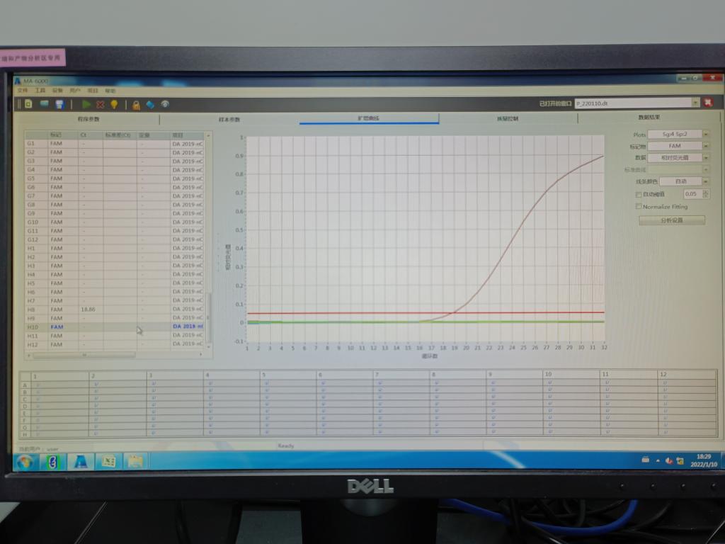 (屏幕上的扩增曲线的走势是判断样本结果的依据,检测标本的时间需要大概六小时左右。)