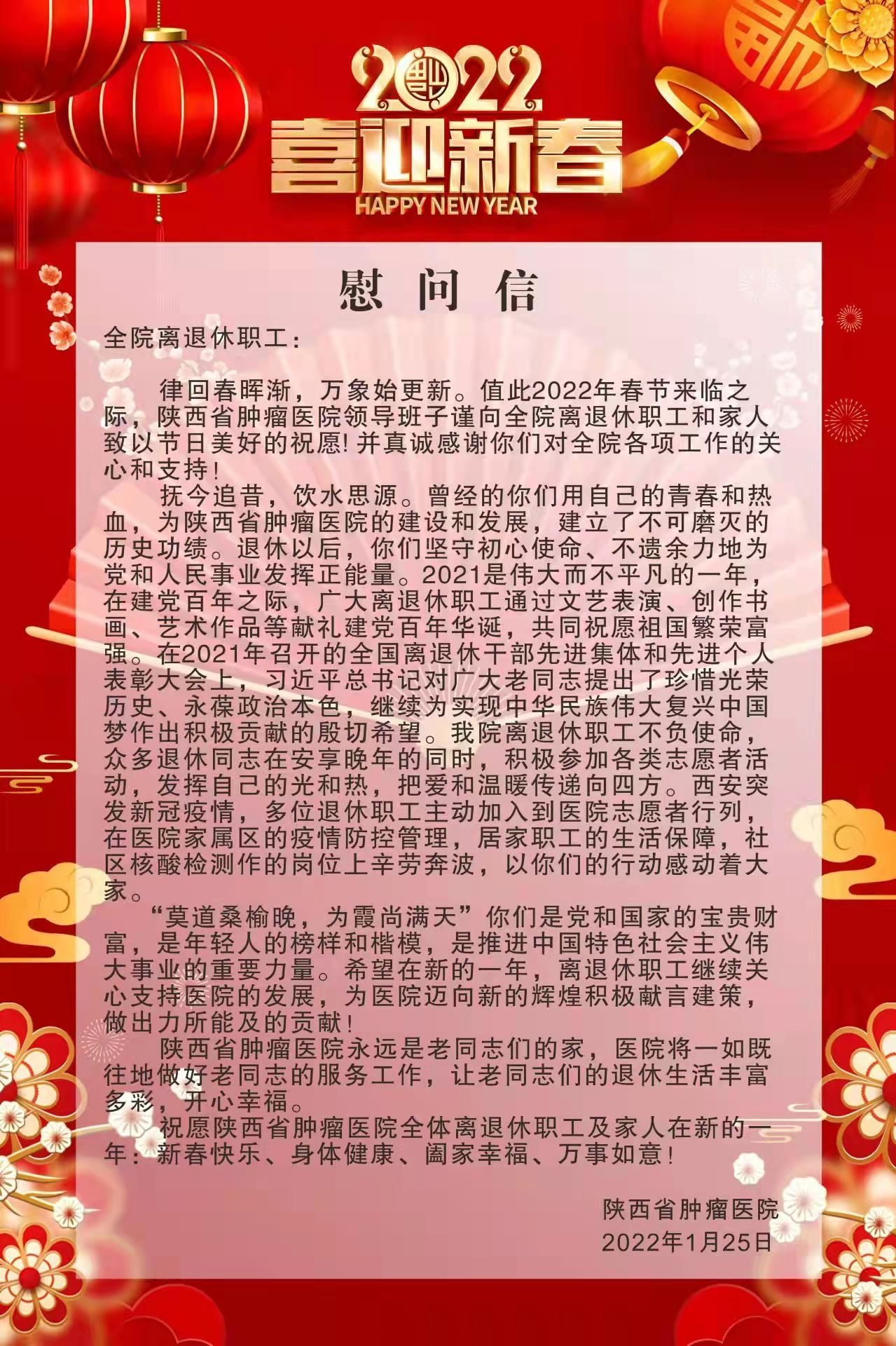 党委组织开展了对离退休职工的慰问活动,向离退休职工发去了慰问信及节日慰问品。给离休干部,退休老领导,身患重病的老职工拜年,向老同志们送去新春的祝福及慰问金,祝愿老同志新春快乐,身体健康,万事如意!感谢老同志们为素股