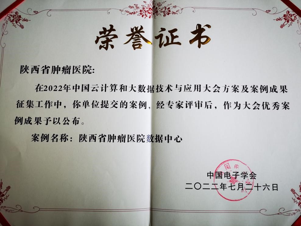 数据中心项目荣获由中国电子学会主办的“2022年中国云计算和大数据技术与应用大会”优秀案例奖。