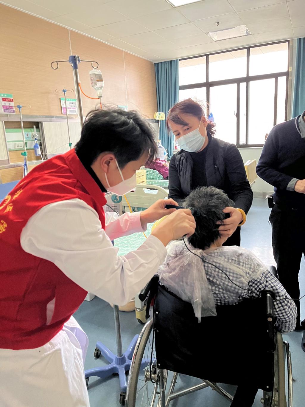 (志愿者进病房理发)