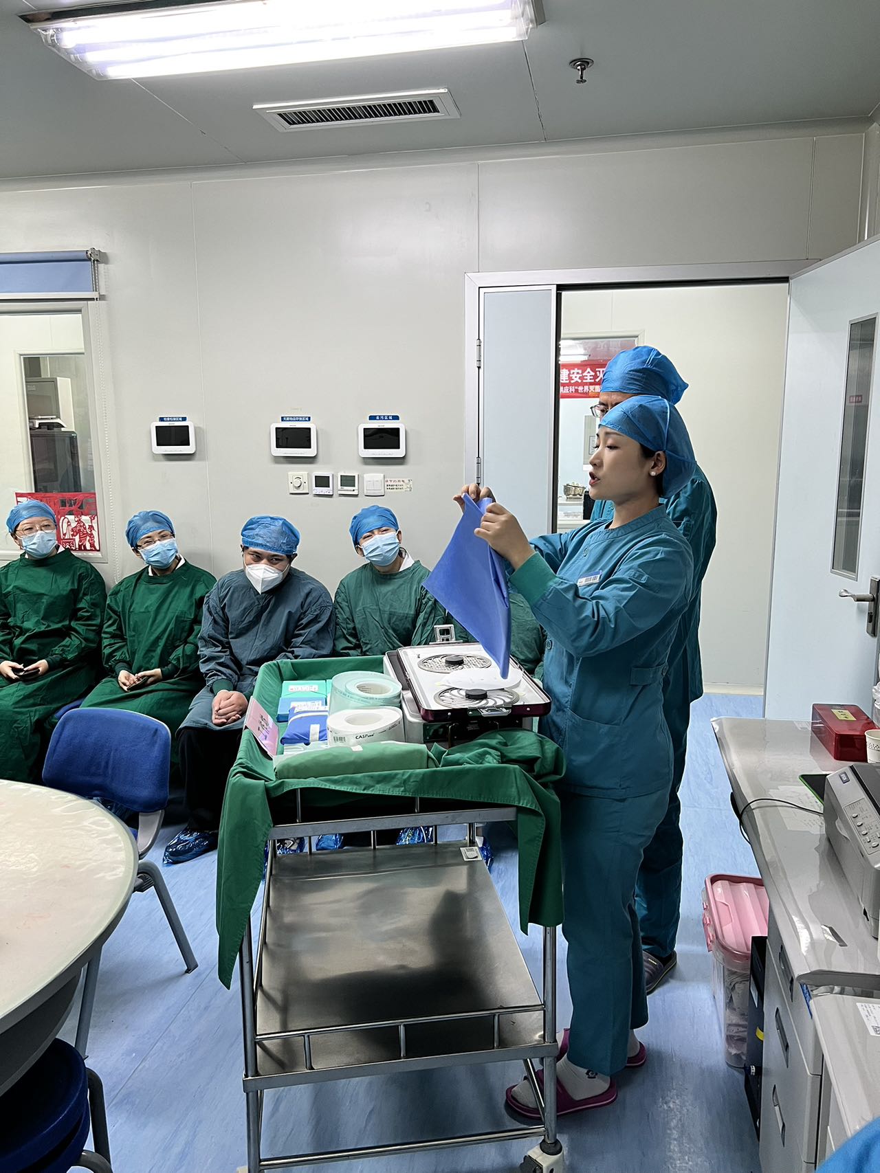 消毒供应科张珲娉护士长就科室概况、环境布局、设备设施配置、工作人员职能架构、取得的荣誉等情况向参观者进行了简单介绍。她讲到“消毒供应科在主管院领导李林副院长和相关职能部门的大力支持下取得了一些成绩,但我们戒骄戒躁,自律慎独。我们肩上的担子依然很重,我们的团队仍要⽴⾜健康新趋势,秉承“清洗包装不苟,消毒灭菌至上”的工作理念,细化工作流程,提高工作效率,不断完善质量控质体系,努力开拓创新,更好的服务于临床、服务于患者,为保障素股