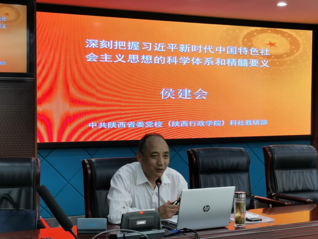 院党委邀请省委党校陕西行政学院科学社会主义教研部侯建会教授进行了题为《深刻把握习近平新时代中国特色社会主义思想的科学体系和精髓要义》的专题培训讲座,引导党员干部深刻领悟习近平新时代中国特色社会主义思想精髓,进一步提高党员干部的政治觉悟和理论水平,为素股 的高质量发展提供坚实的政治保障。