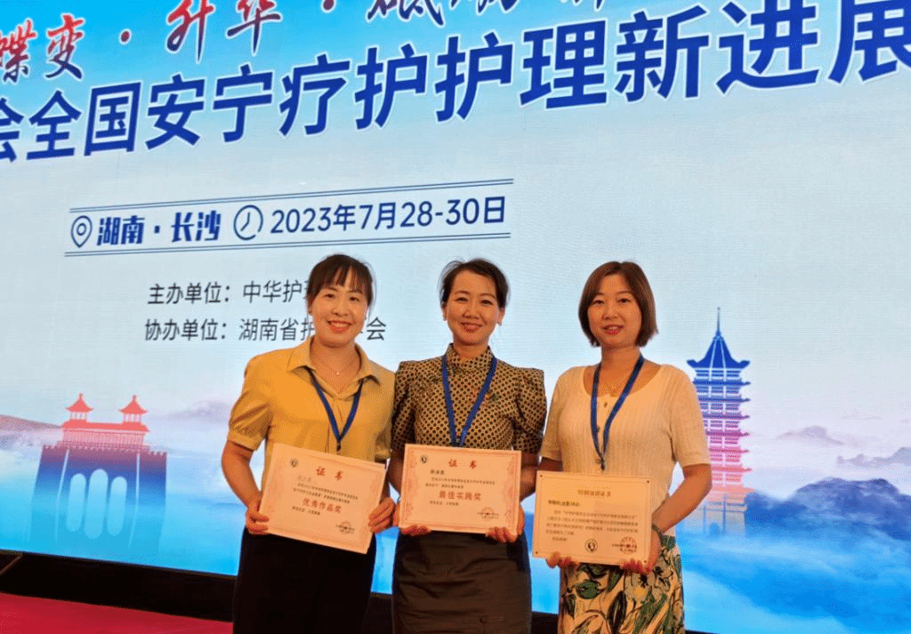 2023年7月28-31日,素股护理团队参加了中华护理学会主办的“第28届中华护理学会安宁疗护专业委员会成立大会”暨“全国安宁疗护护理新进展研讨会。素股护士谢海燕题为《生命末期的摆渡者》,段江英题为《与生命温暖告别》凭借形式新颖独特、内容别具匠心、演讲声情并茂,荣获“爱在安宁”主题演讲大赛最佳实践奖和优秀奖,段江英题为《安慰之光失去亲人的疗愈》的科普视频荣获“安宁疗护之生命教育”大赛优秀奖。