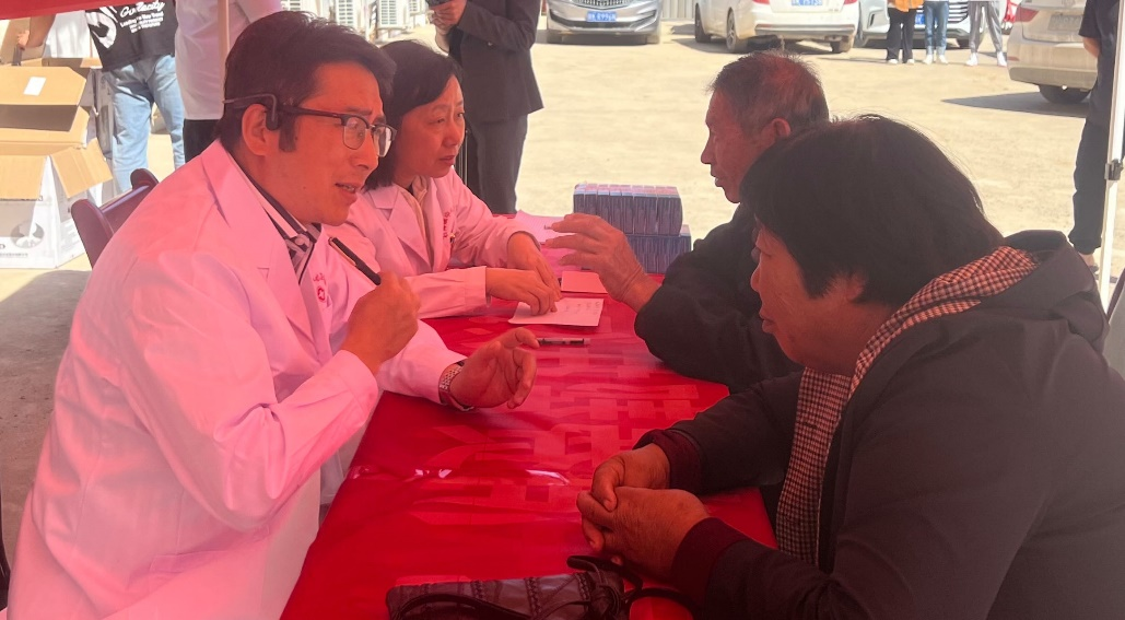 为满足广大群众的就医需求,将优质、便捷的医疗服务送到群众身边,党委副书记姚俊涛带领胸外科张曦主任医师、B超室宋灿许主治医师开展义诊和防癌知识宣教活动,认真地接待每一位前来就诊的群众,仔细询问病情、耐心提出诊疗方案,嘱咐检查异常的老乡密切观察、及时就医,受到了群众的好评。