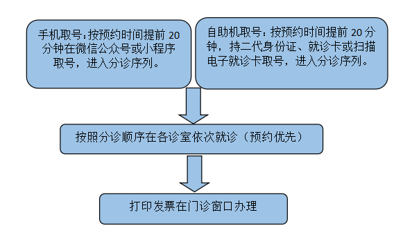 1、挂号取号成功后,按照分诊序列前往各科室专家门诊就诊。
