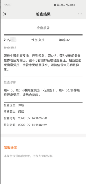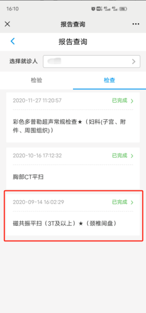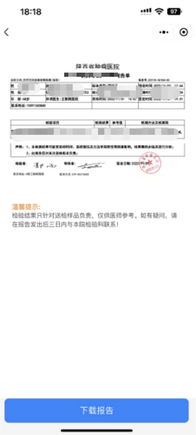 检查结果出来后,可以通过点击【报告查询】,查看报告详情。