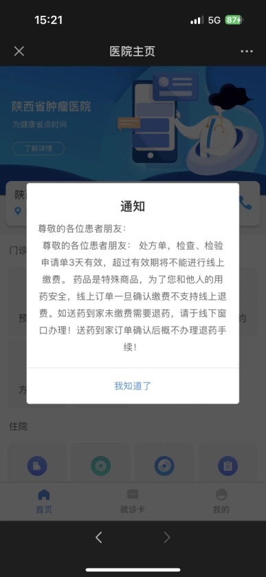 3阅读通知提示后在线缴处方、检查、检验等费用