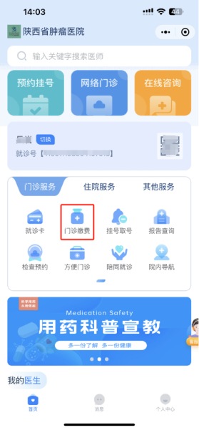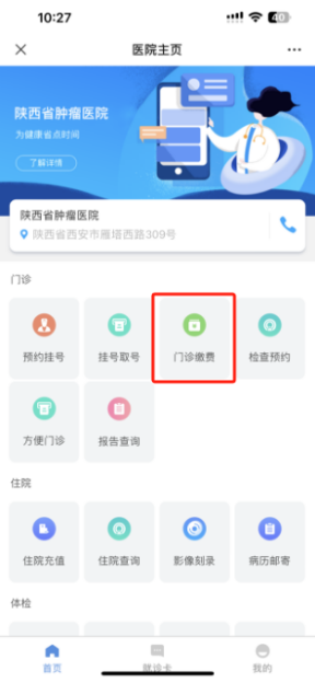 完成看诊后,可以通过点击【门诊缴费】,查看需要支付的处方、检查、检验项目。